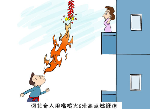 新聞浮世繪:河北奇人用嘴噴火6米高點(diǎn)燃鞭炮