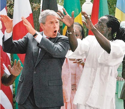 于白宮出席活動(dòng),提高大眾對(duì)非洲瘧疾問題的意識(shí),期間他模仿非洲舞蹈演員“翩翩起舞”