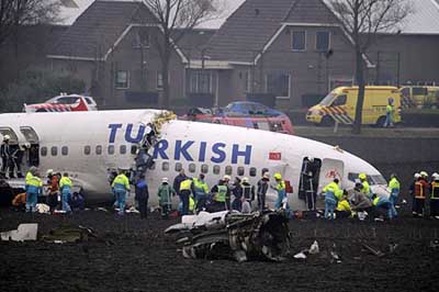 有現(xiàn)場目擊者稱,飛機(jī)在機(jī)場跑到附近的泥濘地墜毀,機(jī)身斷為三截,機(jī)尾、引擎與機(jī)身脫離。但慶幸的是,飛機(jī)未發(fā)生爆炸,也未起火。荷蘭官員稱此次空難造成傷亡人數(shù)如此至少實(shí)為“奇跡”。