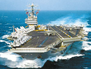 “尼米茲”級(jí)家族中零星參戰(zhàn)的成員暫且按下不表,單說(shuō)說(shuō)“西奧多·羅斯福”號(hào)(CVN-71)的戰(zhàn)斗履歷。該艦在1991年的海灣戰(zhàn)爭(zhēng)大顯身手,后參加過(guò)1999年的科索沃戰(zhàn)爭(zhēng),是同級(jí)艦中實(shí)戰(zhàn)經(jīng)驗(yàn)最豐富的航母。在海灣戰(zhàn)爭(zhēng)中,“羅斯!碧(hào)進(jìn)入波斯灣,與其它艦只一起打擊伊拉克軍事目標(biāo),共擊毀伊軍艦艇57艘、重創(chuàng)16艘,摧毀陸地目標(biāo)幾十個(gè),艦載機(jī)每晝夜起飛150余架次,創(chuàng)造了空前紀(jì)錄。
