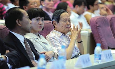 諾貝爾物理學(xué)獎(jiǎng)獲得者、美國能源部部長、華裔,朱棣文的三重身份吸引了大批清華學(xué)子,諾獎(jiǎng)得主楊振寧和夫人也到場(chǎng)旁聽捧場(chǎng),能容納三百人的報(bào)告廳座無虛席,過道都站滿了慕名前來的同學(xué)。11點(diǎn),朱棣文準(zhǔn)時(shí)現(xiàn)身,盡管天氣炎熱,他仍然正裝穿扮,白色襯衫、深色西裝、深色領(lǐng)帶。