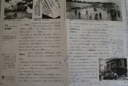 除了用詞之外,對(duì)輔助照片的運(yùn)用也值得注意。介紹南京大屠殺史,通常使用日軍進(jìn)入南京的照片。而沒(méi)有一本書(shū)中采用了南京市民被日軍殘害的照片。而日本學(xué)生們?cè)谶@樣的教科書(shū)中,根本找不到日軍殘暴行為的具體痕跡。