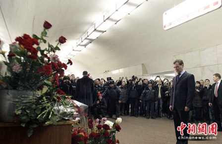 人們?cè)诎l(fā)生爆炸的“盧比揚(yáng)卡”地鐵站以及“文化公園”地鐵站設(shè)立了紀(jì)念處,向亡者獻(xiàn)上鮮花寄托哀思。俄羅斯總統(tǒng)梅德韋杰夫29日傍晚來到“盧比揚(yáng)卡”地鐵站獻(xiàn)花,并矢言將嚴(yán)懲發(fā)動(dòng)襲擊的不法分子。