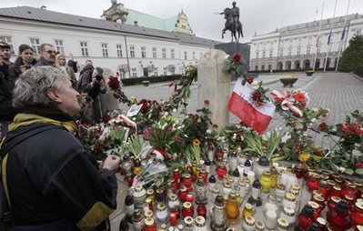 代行總統(tǒng)職權(quán)的波蘭眾議院議長科莫羅夫斯基10日宣布舉行為期一周的“全國哀悼日”,悼念當天在飛機失事中遇難的波蘭總統(tǒng)卡欽斯基及其隨行人員。俄羅斯總統(tǒng)梅德韋杰夫10日也宣布4月12日為俄羅斯的全國哀悼日。