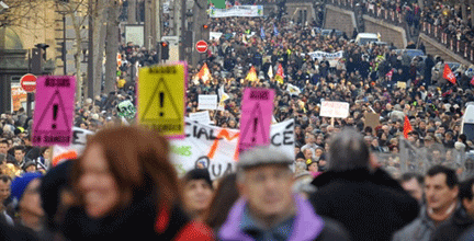 法國政府今年初共投入了24億歐元刺激經(jīng)濟,但法國人認為這筆錢不足以保護他們的職位及工資。法國失業(yè)人數(shù)至今已達200萬,預料在未來12個月,失業(yè)率或會升至10%。今年1月,逾100萬名法國工人參加大罷工,工會呼吁薩科齊廢除其削減公營機構職位的計劃。