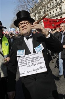 據(jù)悉,這場大罷工的目標(biāo)是迫使法國總統(tǒng)薩科齊在經(jīng)濟(jì)危機(jī)日益加深之際,提高工資、保障工作權(quán)。