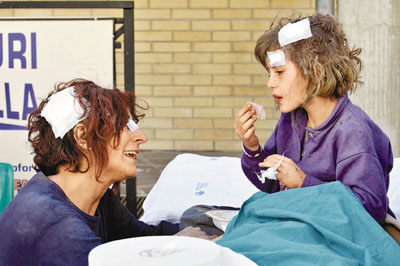 災(zāi)區(qū)一片愁云慘霧下,亦偶有振奮人心的消息。意大利安莎通訊社報道,救援人員昨晨在拉奎拉的瓦礫中救出一名98歲老婦,她的健康狀況良好。她在等候救援30小時,自言一直在“做針線活兒”。消防員又在瓦礫中救出2歲小女孩,她的母親為了救她,用身體擋住瓦礫,傷重不治。