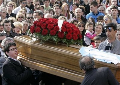 意大利中部城市拉奎拉的居民8日為地震中遇難的人舉行了首批葬禮。由于震區(qū)目前余震不斷,所以從廢墟中挖掘更多幸存者的希望越來越小。星期五將在拉奎拉為地震死難者舉行一個(gè)集體葬禮,這一天意大利全國將為死難者哀悼。