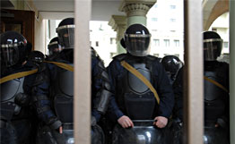 格魯吉亞媒體報道稱,抗議者使用棍棒襲擊警察,Giorgi攀越過警察局圍墻引發(fā)沖突。