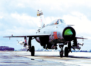 新聞背景 據(jù)美聯(lián)社報(bào)道,2008年底,作為冷戰(zhàn)的一個(gè)象征,在與蘇聯(lián)的主要對(duì)手——北約的對(duì)抗前線(xiàn)服役了50年后,米格-21戰(zhàn)機(jī)行將退役。英國(guó)專(zhuān)業(yè)刊物《空軍月刊》的編輯阿倫·沃恩斯評(píng)論:“在第二次世界大戰(zhàn)之后的歐洲,沒(méi)有任何一種飛機(jī)能像米格-21那樣,對(duì)軍事航空領(lǐng)域產(chǎn)生那么深遠(yuǎn)的影響”。