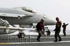 媒體記者在首爾南部京畿道的美空軍烏山基地乘上運(yùn)輸機(jī),經(jīng)過約1小時15分后著陸在斯坦尼斯號上。對于斯坦尼斯號的所在方位,美軍方面僅表示位于距日本海的韓國沿岸“東北方向約200英里(約320公里)的海上”。