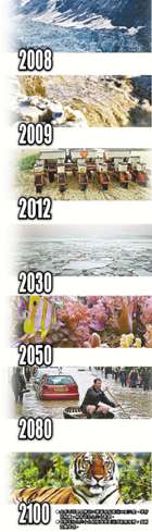 雖然確定這些潛在的巨變的日期并不容易,但是以下時間表有助于我們從宏觀角度看地球的未來。這個時間表,是根據(jù)近期多項研究和政府間氣候變化委員會報告所制訂。