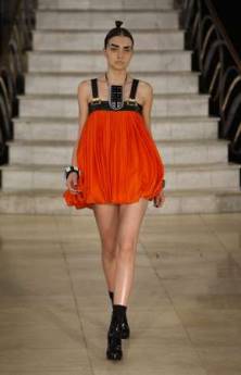 朱利安•麥當(dāng)勞就表示,這場(chǎng)時(shí)裝秀設(shè)計(jì)重點(diǎn)是以軟毛無光澤與光澤和玻璃碎片來營造都市時(shí)尚感。而另外一位以簡約摩登著稱的英國設(shè)計(jì)師杰斯波•康蘭則是以黑色基調(diào)貫穿全場(chǎng),在歌劇卡門的音樂下,一位位模特兒以馬甲修飾身材曲線,充滿復(fù)古風(fēng)情。杰斯波•康蘭說,大量使用黑色的靈感來自X光線,而外部堅(jiān)挺內(nèi)部卻又柔軟的展現(xiàn),讓女性同時(shí)展現(xiàn)性感、調(diào)皮與自信。