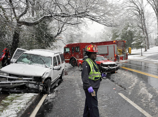 雖然沒有重大傷亡,但暴雪導(dǎo)致路面濕滑,引發(fā)很多交通意外。田納西州西部的I-40高速公路以及東部接近肯塔基州的一段公路,發(fā)生一連串車禍,引致交通大擠塞。