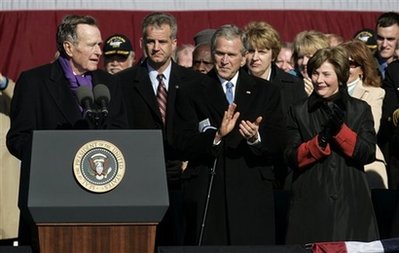據(jù)“中央社”報道,布什與親近家人及高層官員,參加核子動力航空母艦“布什號”(USS George H.W. Bush)下水服役儀式?偨y(tǒng)當選人奧巴馬1月20日進入白宮時,布什將卸下總統(tǒng)職務。