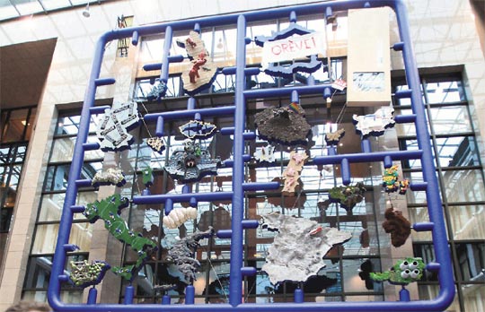 中新網(wǎng)1月16日電 據(jù)臺灣《聯(lián)合報》報道,捷克自今年元月1日起擔(dān)任歐盟輪值主席國,原本想收集27個歐盟成員國的象征性藝術(shù)創(chuàng)作,拼湊成一幅代表歐盟的雕塑,在15日公開展出。想不到負責(zé)此計劃的畫家施爾尼找了幾個同伙,擅自將保加利亞描繪成馬桶、荷蘭描繪成遭受海水澆灌的水鄉(xiāng)澤國,因而引起外交風(fēng)波。