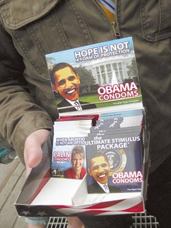 理查德在販賣“奧巴馬保險(xiǎn)套”的同時(shí),也同時(shí)推出“麥凱恩保險(xiǎn)套”與“佩林保險(xiǎn)套”。