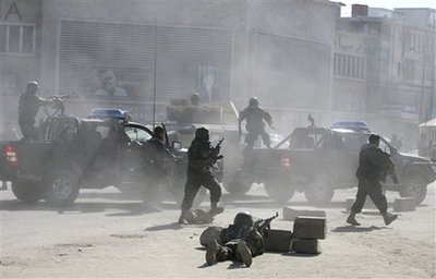 另?yè)?jù)新華網(wǎng)報(bào)道,有目擊者稱,恐怖分子一度占領(lǐng)了司法部大樓,并用自動(dòng)步槍瘋狂掃射。目前,警方已奪回對(duì)大樓的控制權(quán),并打死至少4名恐怖分子。此外,在阿富汗安全情報(bào)部附近,安全人員也打死2名準(zhǔn)備發(fā)動(dòng)自殺襲擊的恐怖分子?植婪肿赢(dāng)天還向位于喀布爾北部的一座政府建筑發(fā)動(dòng)了襲擊。