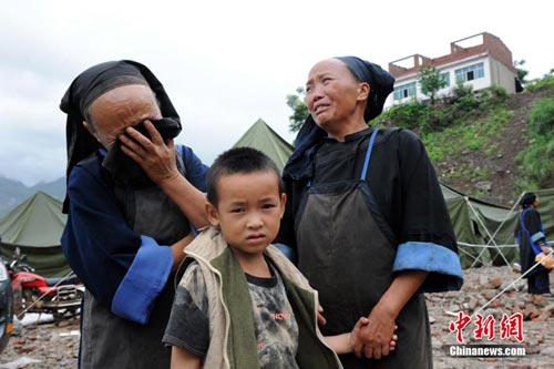 “可能是救不出來了!贝笳逵罉方M70歲的布依族老漢盧正安低聲囁嚅著。盡管這么說,但他還是不住的向家的方向望去。伴著28日中午大山的一聲巨大悶響,巨大的泥石流將他在貴州關嶺縣大寨村大崗嶺半山腰上的家埋得沒了蹤影。不僅是所有家當,被埋的還有他正在家中吃午飯的15歲孫子小川。