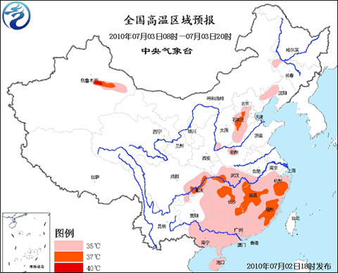 中央氣象臺7月3日06時繼續(xù)發(fā)布高溫藍色預(yù)警: