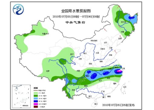 中新網(wǎng)7月5日電 中央氣象臺今晨6時發(fā)布短期天氣預(yù)報(bào),未來三天,青藏高原中東部、西北地區(qū)中東部、西南地區(qū)、江漢、江淮、江南中北部等地有降水,其中,重慶大部、湖北南部、湖南北部、安徽南部、江西北部、浙江大部、福建北部等地有大到暴雨、局地大暴雨,西藏東南部、云南西北部等地有大雨;新疆北部、內(nèi)蒙古東北部、東北大部多陣雨或雷雨,其中,黑龍江東部、吉林東部等地的部分地區(qū)有大雨、局地暴雨。上述部分地區(qū)并伴有短時雷雨大風(fēng)或冰雹等強(qiáng)對流天氣。