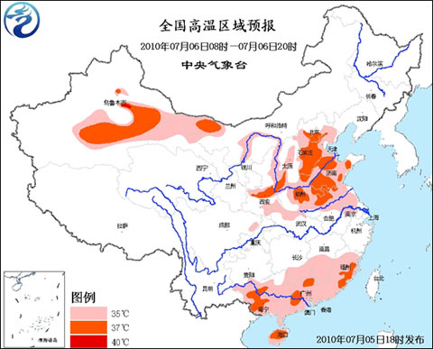 中央氣象臺(tái)7月5日18時(shí)繼續(xù)發(fā)布高溫黃色預(yù)警: