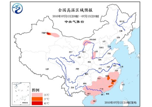 中新網(wǎng)7月12日電 中央氣象臺(tái)7月12日18時(shí)繼續(xù)發(fā)布高溫藍(lán)色預(yù)警:預(yù)計(jì),明天白天,內(nèi)蒙古河套地區(qū)、陜西關(guān)中東部、山西西南部、湖南中南部、江西中南部和東北部、浙江中南部、福建大部、廣東大部、廣西大部、海南大部、臺(tái)灣西北部等地有35℃以上高溫天氣、局地溫度可達(dá)37~38℃。