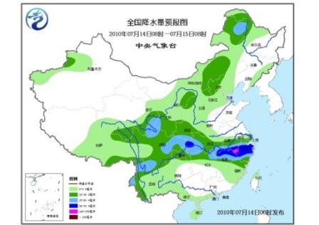 中新網(wǎng)7月14日電 據(jù)中央氣象臺(tái)網(wǎng)站消息,未來三天,青藏高原東部及其以東大部地區(qū)有一次明顯降水天氣過程,其中,長江流域和淮河流域以及廣東西南部、海南、陜西中南部、山西西南部、內(nèi)蒙古東部、黑龍江西部等地有大到暴雨,局部地區(qū)有大暴雨;西藏東南部、云南西北部、青海東部、甘肅南部等地的部分地區(qū)有大雨;上述部分地區(qū)并伴有短時(shí)雷雨大風(fēng)或冰雹等強(qiáng)對(duì)流天氣。