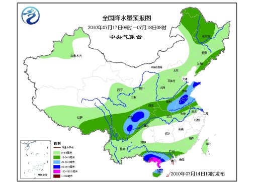 中新網(wǎng)7月14日電 據(jù)中央氣象臺預(yù)報,未來10天,降雨區(qū)范圍較廣,雨帶位置不穩(wěn)定;江南中南部、華南北部多高溫少雨天氣;西北地區(qū)東部、華北、黃淮、東北多陣性降雨。14日,江南東北部仍將有較大降雨;之后,雨區(qū)北抬到淮河流域;江南北部將轉(zhuǎn)為高溫少雨天氣。17日前后,1002號熱帶風(fēng)暴“康森”將影響華南沿海。
