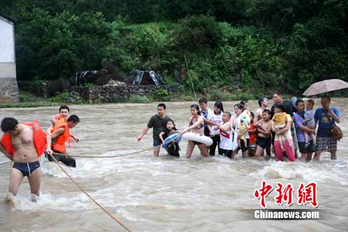 中新網(wǎng)衢州7月18日電(記者 江耘 通訊員 饒小飛)今天下午,浙江衢州石梁鎮(zhèn)坎底村水庫因暴雨致水位突漲,18名正在水庫里休閑渡假的游客被困水庫中央,其中7人是小孩。后在衢州柯城消防架設“安全通道”下,18名游客被安全救出。