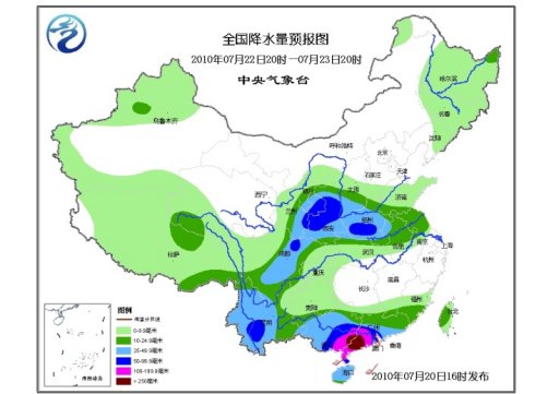 22日20時至23日20時,新疆南部山區(qū)和天山以北地區(qū)、青海西南部、西藏、內(nèi)蒙古東北部、東北大部、甘肅東部、寧夏、陜西、華北西部和南部、黃淮、江淮、江漢、華南大部、西南地區(qū)大部有小到中雨或陣雨,其中,四川中部和北部、甘肅東部、陜西中南部、山西西南部、河南大部、湖北西北部、廣東南部、廣西大部、海南、云南中西部等地有大雨或暴雨;廣東西南部、廣西東南部等地有大暴雨,局部特大暴雨;上述地區(qū)局部并伴有短時雷雨大風(fēng)等強(qiáng)對流天氣。新新疆中部、內(nèi)蒙古西部等地有4~6級風(fēng)。受熱帶風(fēng)暴“燦都”的影響,南海北部海域?qū)⒂?~9級大風(fēng),“燦都”中心經(jīng)過的附近海面的風(fēng)力可達(dá)10~11級,部分海域陣風(fēng)可達(dá)12級。