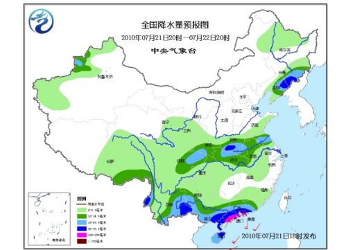 中新網7月21日電 據中央氣象臺預報,未來三天,新疆北部、東北地區(qū)大部及秦嶺、淮河以南大部地區(qū)將有小到中雨,其中,遼寧東北部、吉林東部、甘肅東部、陜西南部、河南大部、湖北北部、安徽北部、江蘇北部、云南大部、貴州南部、廣西大部、廣東中南部、海南將有大雨或暴雨,其中,廣西南部、廣東南南部、海南北部等地的部分地區(qū)有大暴雨,局地有特大暴雨;上述部分地區(qū)并伴有短時雷雨大風或冰雹等強對流天氣。