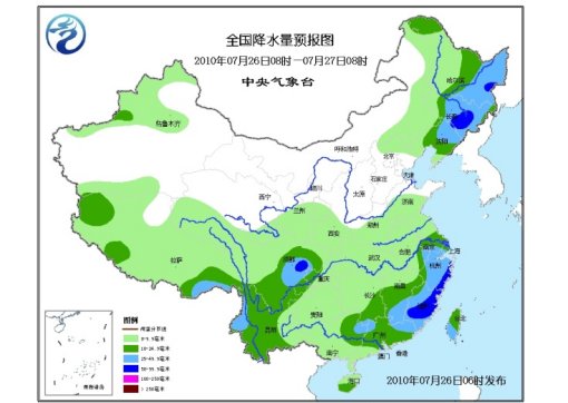 中新網(wǎng)7月26日電 據(jù)中央氣象臺(tái)預(yù)報(bào),未來三天,四川盆地中部和南部、云南西北部、黑龍江東部和南部、吉林大部、遼寧東部、浙江東部、福建大部、臺(tái)灣大部、廣東大部等地先后有大雨或暴雨,局地有大暴雨;上述部分地區(qū)并伴有短時(shí)雷雨大風(fēng)或冰雹等強(qiáng)對流天氣。