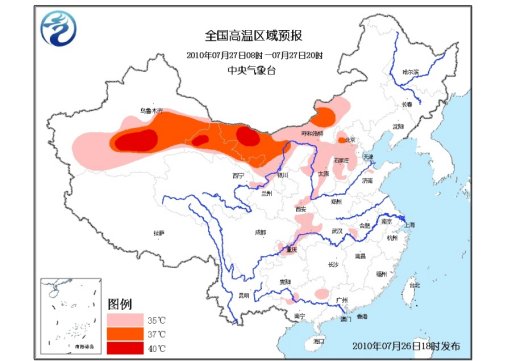預(yù)計(jì),明天白天,北京南部、河北中西部、山西大部、陜西東部、寧夏北部、重慶大部、湖北西北部和東南部、廣西中部等地有35℃以上的高溫天氣,局地最高氣溫可達(dá)37~38℃;內(nèi)蒙古中西部、甘肅中西部、新疆吐魯番盆地及南疆盆地大部等地將有35~37℃的高溫天氣,局部地區(qū)最高氣溫可達(dá)40℃以上。