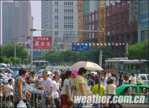 與內(nèi)蒙古等地干熱高溫天氣有所不同的是,河北、北京、天津等地從7月21日開始進(jìn)入了高溫高濕天氣階段。雖然日最高氣溫沒有內(nèi)蒙古地區(qū)高,一般都在35℃附近,但由于濕度較大,人體感覺非常不適。這一階段的高溫天氣與該地區(qū)7月2~8日的干熱型高溫天氣不同,屬于典型的悶熱型高溫天氣。