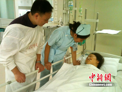 10點(diǎn)55分,又有一男性傷員從ICU病房推出來,看上去精神不錯(cuò),還可以向熟識的親人、朋友打招呼,爾后立即被送往住院部。