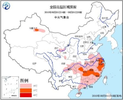 預(yù)計,今天下午,黃淮南部、江淮大部、江漢南部、江南、華南中東部、四川盆地東部和南部、重慶大部、貴州東北部、甘肅中部以及臺灣北部等地有35~37℃的高溫天氣,局部地區(qū)最高氣溫可達(dá)38~40℃。
