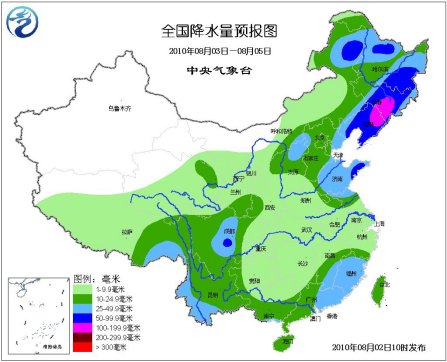 未來10天,東北、華北大部、黃淮東部將有40-80毫米降雨,其中吉林中東部、遼寧的部分地區(qū)有100-160毫米;比常年同期偏多3-7成;主要降雨過程將出現(xiàn)在3-5日和8-10日。