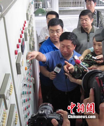 中新網(wǎng)通化8月4日電 (記者 吳兆飛 崔顏鋒)8月4日9時15分,吉林省通化市市長田玉林在當?shù)貎羲畯S啟動了供水按鈕,這意味著經(jīng)過64個小時的緊張搶修,通化市終于恢復供水,預計在數(shù)小時后,33萬通化市民在家中將可以用上自來水。