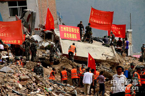 舟曲搶險(xiǎn)救災(zāi)進(jìn)入第四天,氣溫居高不下,給災(zāi)害現(xiàn)場防疫工作帶來嚴(yán)峻挑戰(zhàn)。今天,蘭州軍區(qū)派出包括核生化應(yīng)急救援分隊(duì)在內(nèi)的多支專業(yè)防疫部隊(duì)積極參與舟曲疫情防控工作。