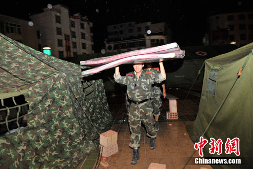 中新網(wǎng)舟曲8月11日電(記者 唐偉杰 劉賢)晚上8點(diǎn)半左右,在數(shù)十分鐘的密集電閃雷鳴后,舟曲災(zāi)區(qū)開始降雨,目前雨勢較小。據(jù)氣象部門預(yù)報(bào),今晚舟曲雷陣雨轉(zhuǎn)中雨,明天預(yù)計(jì)繼續(xù)有中雨。