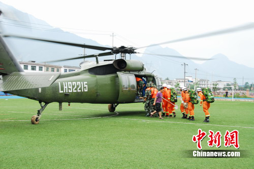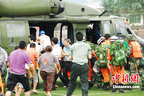 中午12時05分,空軍陸航團派出兩架直升飛機前來支援,深入災區(qū)探測道路情況和人員被困情況。從下午1點14時45分至下午4點,消防支隊共派出30人,由參謀長徐昌榮帶隊分六批次搭乘空軍陸航團飛機帶上破拆工具、生命探測儀、照明工具、水上救援工具、安全救生繩索等已安全到達清平災區(qū)。30名消防官兵到達災區(qū)后,立即設立了消防部隊搶險救援指揮部,指揮一線官兵積極投入救援工作,爭分奪秒營救被困群眾。