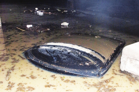 昨日凌晨1點(diǎn)過(guò),還在睡夢(mèng)中的張先生被窗外的雷鳴聲驚醒,接著他聽(tīng)到樓下傳來(lái)喊叫,“車庫(kù)被淹了,快把外面的車開(kāi)走。”張先生猛地從床上爬起來(lái),火急火燎地跑向車庫(kù)時(shí),發(fā)現(xiàn)雨下不夠半小時(shí),車庫(kù)的積水已經(jīng)漲到3米深,里面的7輛汽車全部被淹沒(méi)頂。直到昨日下午7時(shí),車庫(kù)內(nèi)的淤泥還未被清理干凈。 (記者 薛小龍 攝影 呂甲 實(shí)習(xí)生 周烜)