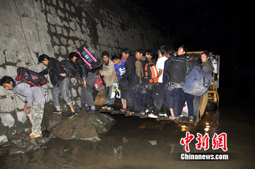 中新網(wǎng)汶川8月15日電(郭永全 張浪)14日19時30分,阿壩消防官兵接到群眾報(bào)警稱:徹底關(guān)往汶川縣城方向一公里處有滯留群眾上千人,請求緊急救援。