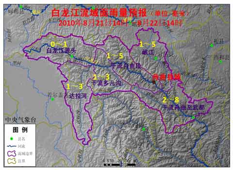 預計,21日14時至22日14時,白龍江流域面雨量有1~5毫米,其中干流舟曲至武都流域面雨量有2~8毫米,白龍江流域發(fā)生地質災害的可能性較大。