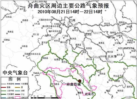 舟曲周邊主要公路仍有降雨,路滑注意安全。具體預報如下: