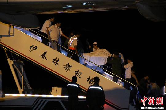 據(jù)了解,空難發(fā)生后,伊春當(dāng)?shù)亓⒓唇M織搶救人員趕往現(xiàn)場,同時從佳木斯、哈爾濱等地增調(diào)救護車和醫(yī)療人員趕往事發(fā)現(xiàn)場。在傷者被送到當(dāng)?shù)厮募裔t(yī)院后,當(dāng)?shù)亟M織100余名醫(yī)療專家進行救治,每一名傷者都有一名專職醫(yī)護人員負(fù)責(zé)看護。但是,當(dāng)?shù)氐尼t(yī)療水平和藥品供應(yīng)無法滿足目前的需求,在將一些重傷者用飛機送走轉(zhuǎn)院的同時,衛(wèi)生部派出專家趕往伊春,幫助處理指導(dǎo)工作。