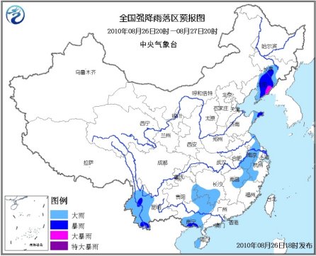 中新網(wǎng)8月26日電 據(jù)中央氣象臺報道,中央氣象臺8月26日18時發(fā)布暴雨藍(lán)色預(yù)警:8月26日20時到8月27日20時,吉林南部、遼寧中東部、山東半島東部、江蘇東部和南部、安徽南部、浙江西部、江西東北部以及湖南南部、貴州東部廣西中東部、海南西部、云南中西部等地有大到暴雨,其中遼寧東部的局部地區(qū)有大暴雨,上述局地并伴有短時雷雨大風(fēng)等強(qiáng)對流天氣。