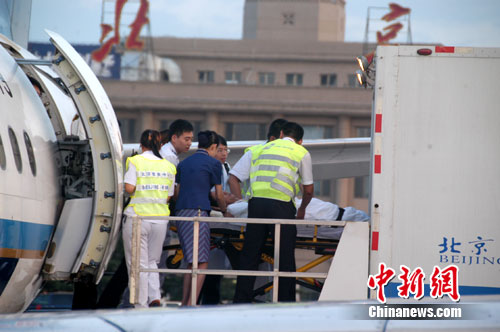 中新網(wǎng)北京8月28日電(張正尤) 8月27日18時(shí)15分,10名伊春“8•24”空難傷員飛抵首都國(guó)際機(jī)場(chǎng)。被在此等候的北京急救中心12輛急救車火速轉(zhuǎn)運(yùn)到北京大學(xué)第三醫(yī)院、北京積水潭醫(yī)院救治。每家醫(yī)院安排收治5名傷員,傷員隨行家屬來(lái)京照顧傷員。
