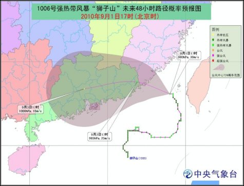 中新網(wǎng)9月1日電 據(jù)中央氣象臺預(yù)計,強(qiáng)熱帶風(fēng)暴“獅子山”將以每小時10~15公里的速度向西北轉(zhuǎn)偏西方向移動,強(qiáng)度還將略有加強(qiáng),并逐漸向廣東汕尾到福建廈門一帶沿?拷,將于明日凌晨到上午在這一帶沿海登陸。